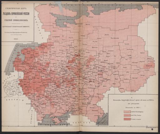 Schematičeskaja karta uězdov evropejskoj Rossīi. Ostatok kartofelja na 1 dušu ob. pola za 1885 g.