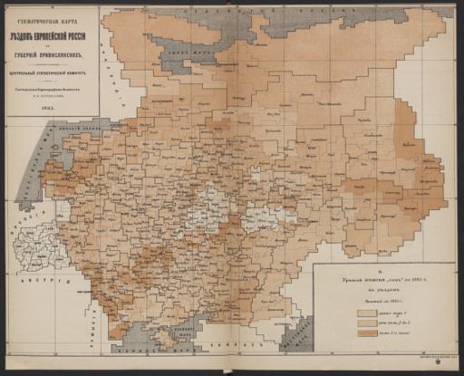 Schematičeskaja karta uězdov evropejskoj Rossīi. Urožaja jačmenja "sam " za 1885 g.
