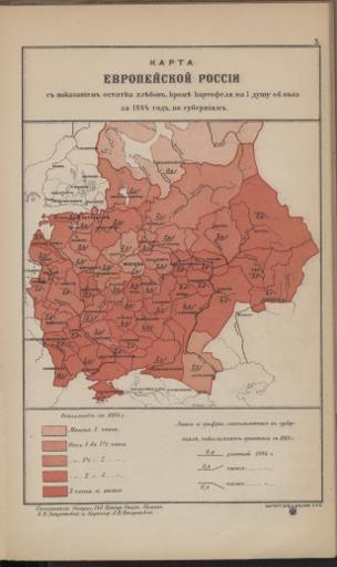Karta Evropejskoj Rossīi s pokazanīem ostatka chlěbov , kromě kartofelja na 1 dušu ob. Pola