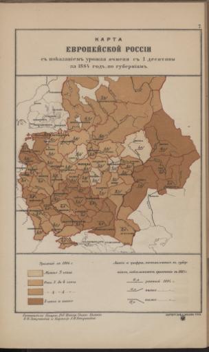 Karta Evropejskoj Rossīi s pokazanīem urožaja jačmenja s 1 desjatiny
