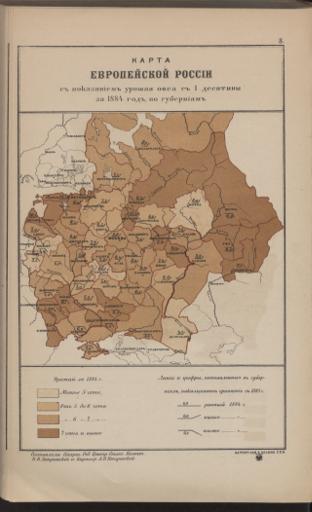 Karta Evropejskoj Rossīi s pokazanīem urožaja ovsa s 1 desjatiny