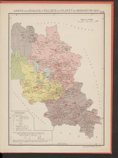 Carte des écoles et églises du vilayet de Monastir (1908)