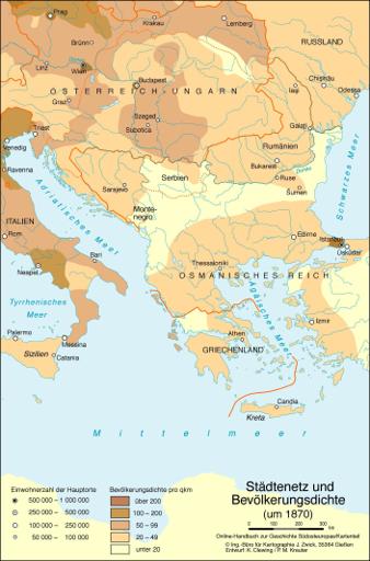 Städtenetz und Bevölkerungsdichte (um 1870)