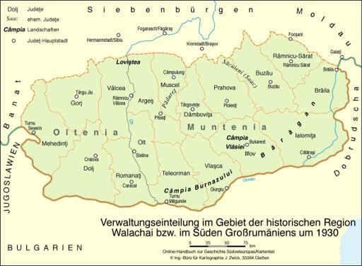 Verwaltungseinteilung im Gebiet der historischen Region Walachei bzw. im Süden Großrumäniens um 1930