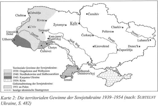 Die territorialen Gewinne der Sowjetukraine 1939-1954