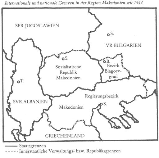 Internationale und nationale Grenzen in der Provinz Makedonien seit 1944