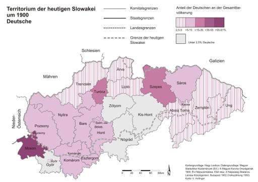 Territorium der heutigen Slowakei um 1900. Deutsche