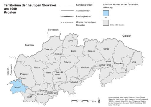 Territorium der heutigen Slowakei um 1900. Kroaten