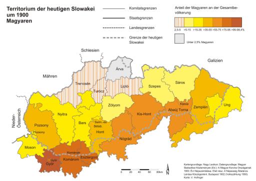 Territorium der heutigen Slowakei um 1900. Magyaren