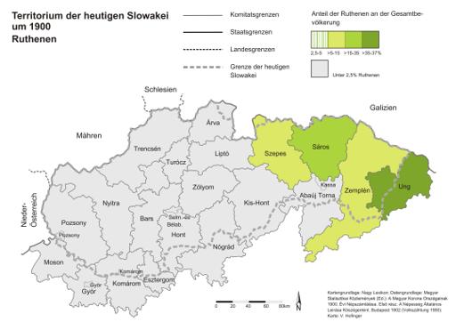 Territorium der heutigen Slowakei um 1900. Ruthenen