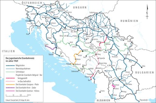Das jugoslawische Eisenbahnnetz im Jahre 1969