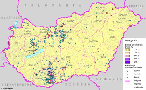 A németek száma és aránya Magyarország területén (2001) és kisebbségi önkormányzataik (2004)
