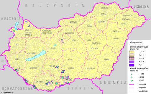 A horvátok száma és aránya Magyarország mai területén 1910-ben