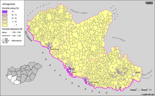 A horvátok aránya és száma Délnyugat-Magyarországon 1880-ben