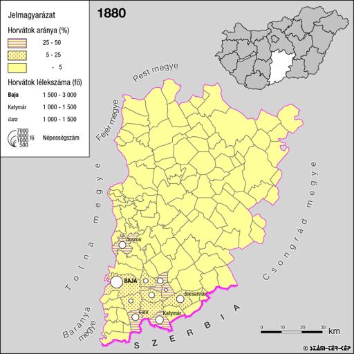 A horvátok aránya és száma Bács-Kiskun megyében 1880-ban
