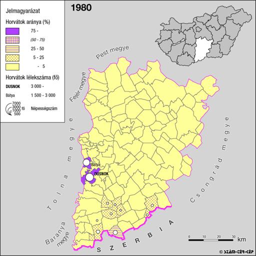A horvátok aránya és száma Bács-Kiskun megyében 1980-ban