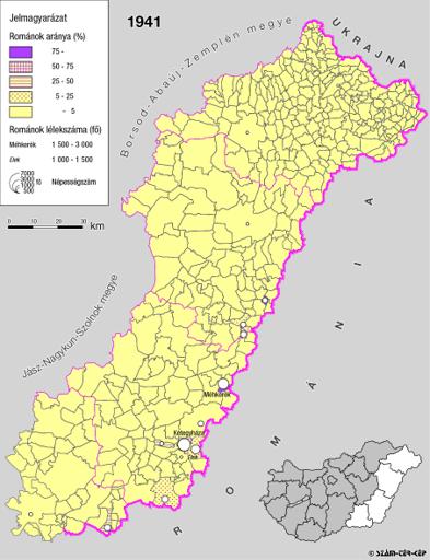 A rományok aránya és száma Kelet-Magyarországon 1941-ben