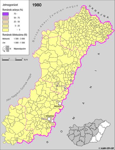 A rományok aránya és száma Kelet-Magyarországon 1980-ban