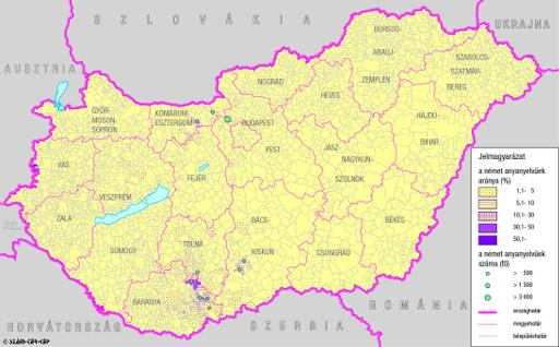 A németek száma és aránya Magyarország területén 1990-ben