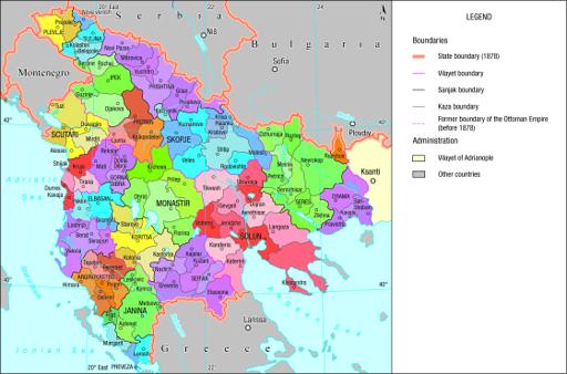 Map 13b : Kaza-level administrative map of Macedonian vilayets after 1900