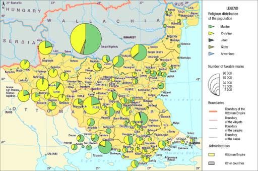 Map 14a : Kaza-level ethnographic map of Tuna and Edirne Vilayets after 1831