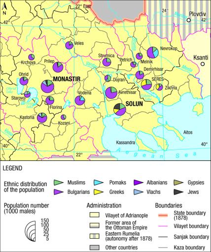 Map 19 : Ethnic map of Macedonia prior to 1878 (based on the Ottoman census)