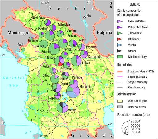 Map 58 : The boundaries and ethnic contact zone of the Albanian nation (Austria-Hungary, 1917)