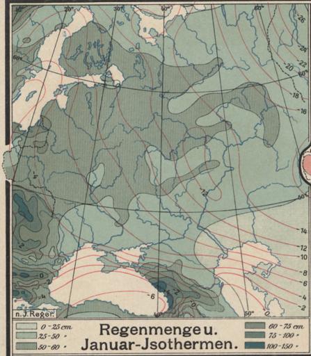 Ruszland, Regenmenge u. Januar-Jsothermen
