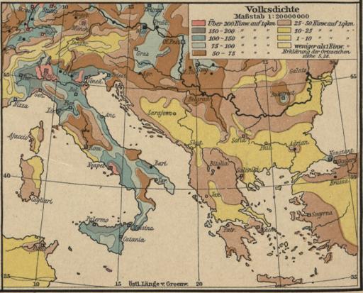 Italien und Balkanhalbinsel. Nebenkarten I. 1 Volksdichte