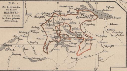 Die Besitzungen des Hauses Habsburg in der Schweiz in ihrer grössten Ausdehnung