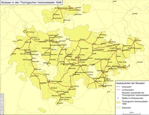 Straßen in den Thüringischen Vereinsstaaten 1848
