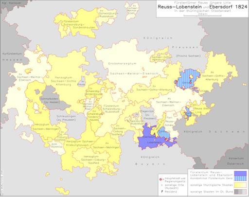 Fürstentümer Reuß jüngere Linie Reuß-Lobenstein und Ebersdorf 1824 in der thüringischen Staatenwelt