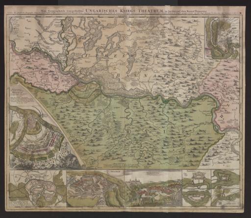 Neu Geographisch vorgestelltes Ungarisches Kriegs-Theatrum in Servien und dem Bannat Temeswar. Worinnen die glückliche Progressen Kayserl. siegreichesten Waffen, unter Commando des Durchl. Princ. Eugenii von Savojen, mit allen bisher in zweyen Feldzügen 1716 und 1717 gehaltenen Schlachten und eroberten Plätzen in Kupfer gewiesen werden von Ioh. Bapt. Homann, der Röm. Kays. Maj.t Geographo in Nürnberg