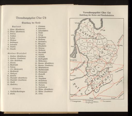 Verwaltungsgebiet Ober Ost. Einteilung der Kreise und Eisenbahnlinien