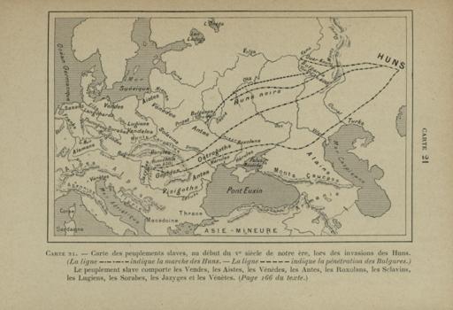 Carte des peuplements slaves, au début du 5e siècle de notre ère, lors des invasions des Huns