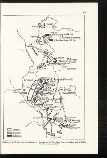 Stellungen der Armeen vor und während der Schlacht an der Bregalnica (und unmittelbar nach derselben)