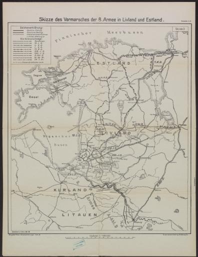 Skizze des Vormarsches der 8. Armee in Livland und Estland