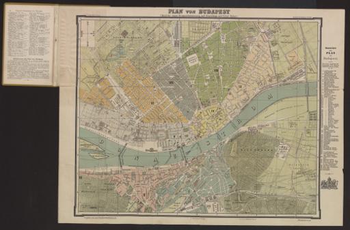 Plan von Budapest mit kurzem Wegweiser und Straßenverzeichnis