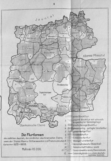 Die Flurformen des südlichen Jauntals, der nördlichen oberkrainischen Ebene, sowie der Steiner Alpen und Ost Karawanken, n.d. Franziszeischen Kataster 1825-1828