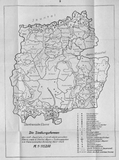 Die Siedlungsformen des südlichen Jauntals, der nördlichen oberkrainischen Ebene, sowie der Steiner Alpen und Ost Karawanken, n.d. Franziszeischen Kataster 1825-1828
