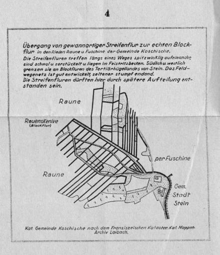 Übergang von gewannartiger Streifenflur zur echten Blockflur in den Rieden Raune u. Fuschine der Gemeinde Koschische