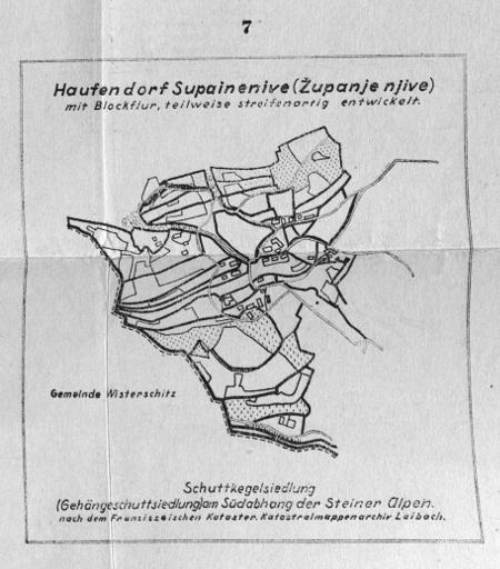 Haufendorf Supainenive (Županje njive), mit Blockflur teilweise streifenartig entwickelt