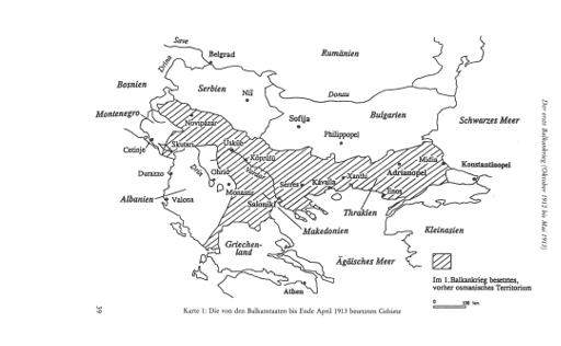 Die von den Balkanstaaten bis Ende April 1913 besetzten Gebiete