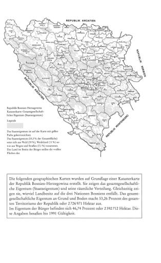 Republik Bosnien-Herzegowina. Katasterkarte: Gesamtgesellschaftliches Eigentum (Staatseigentum)
