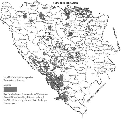Republik Bosnien-Herzegowina. Katasterkarte: Kroaten