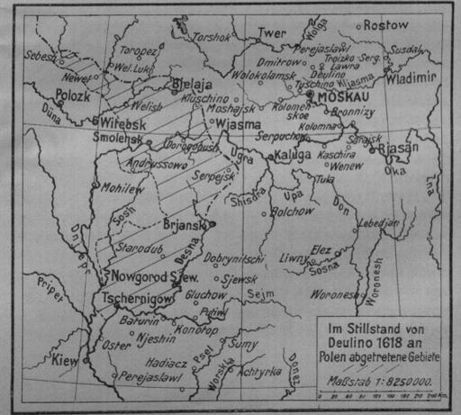 Im Stillstand von Deulino 1618 an Polen abgetretene Gebiete