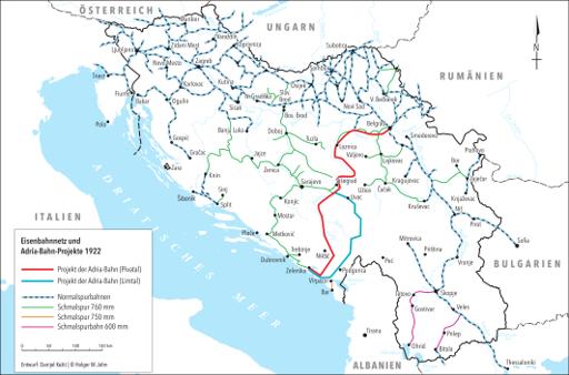 Eisenbahnnetz und Adria-Bahn-Projekte 1922
