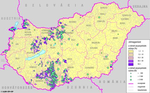 A németek száma és aránya Magyarország mai területén 1910-ben