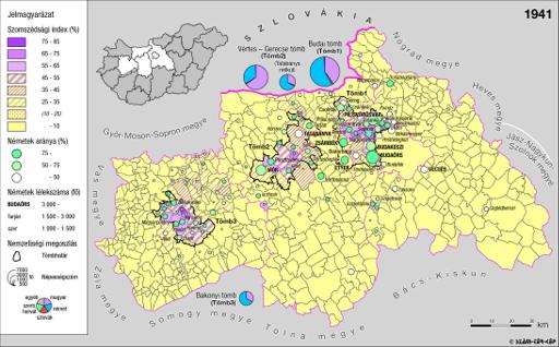 A németek településterülete a szomszédsági mutató alapján Közép-Dunántúlon 1941-ban