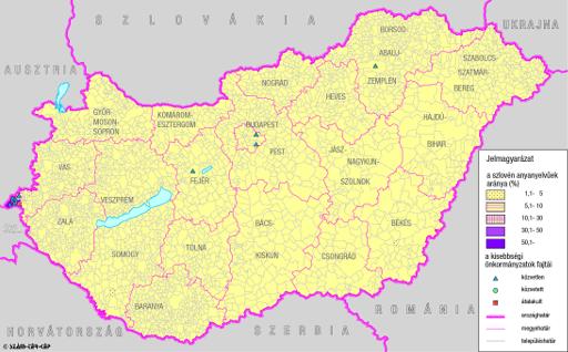 A szlovén száma és aránya Magyarország területén (2001) és kisebbségi önkormányzataik (2004)